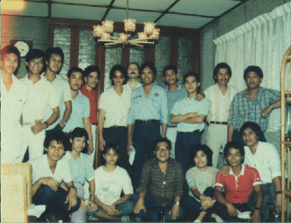 This is a photograph of the APDC technical and administrative staff at the 1986 Christmas Party. Missing are the 2 janitors, driver, messenger and maintenance man.